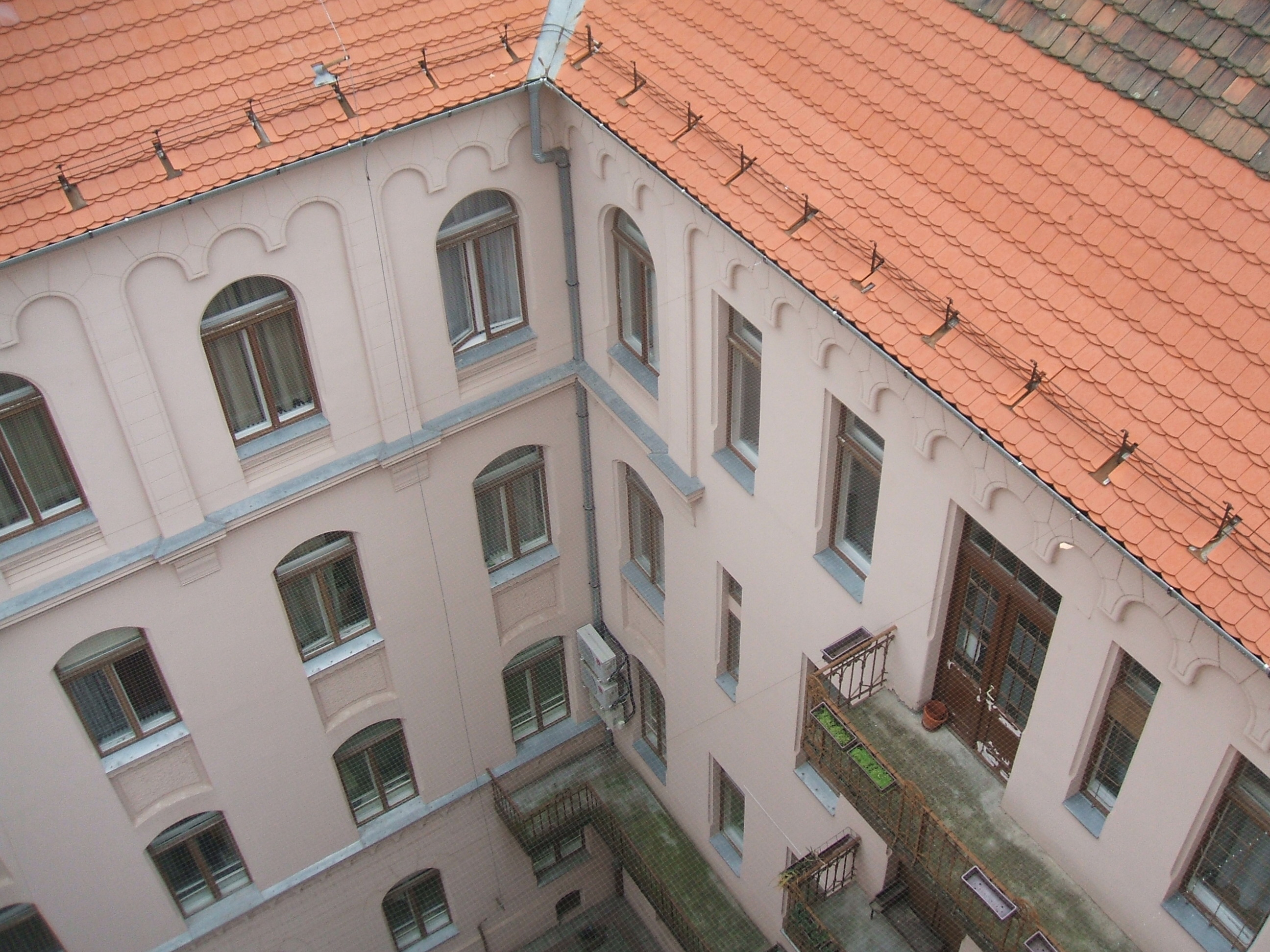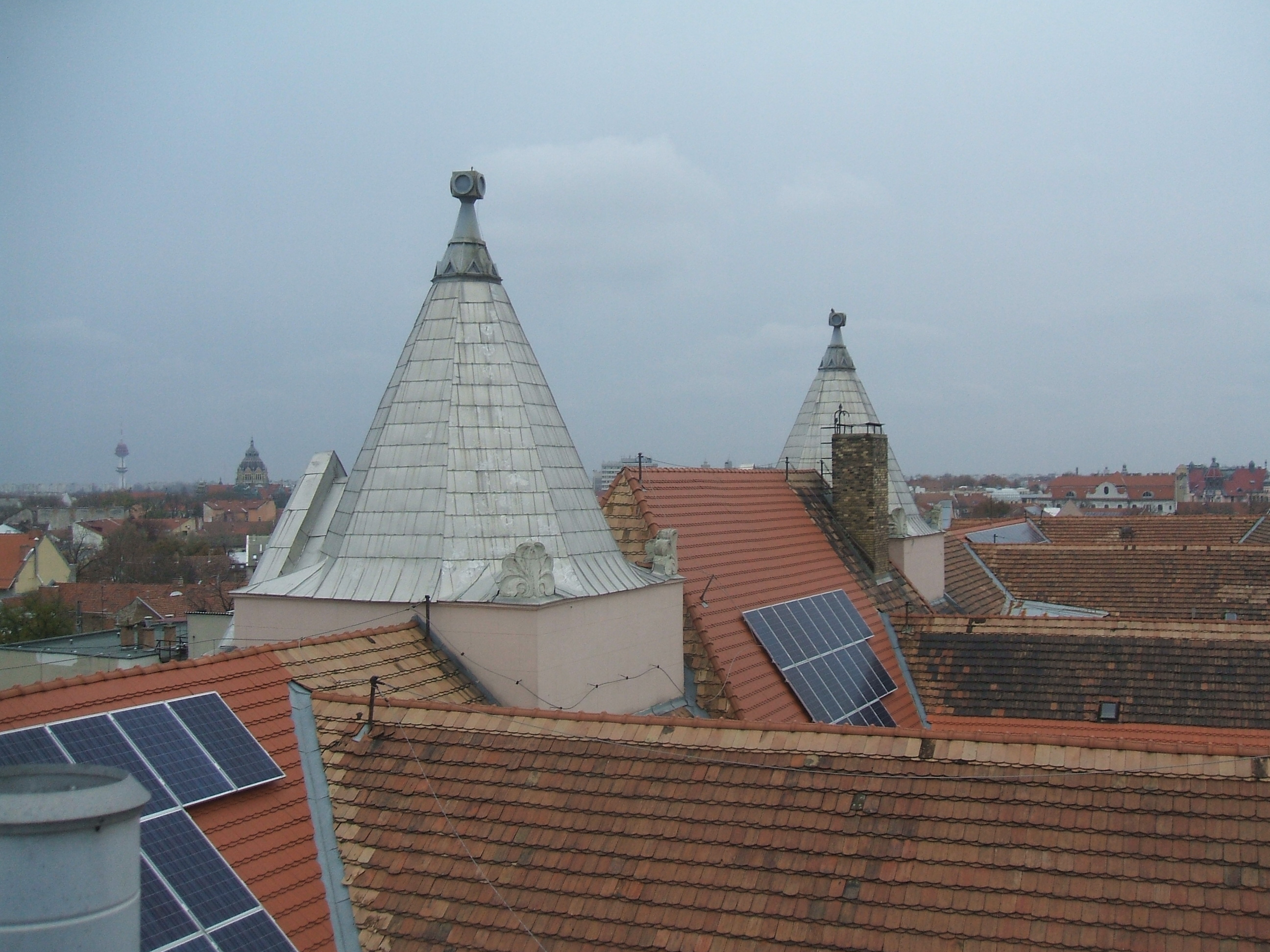 5.kép A tetőt díszítő tornyok és a délies irányba telepített napelemek.