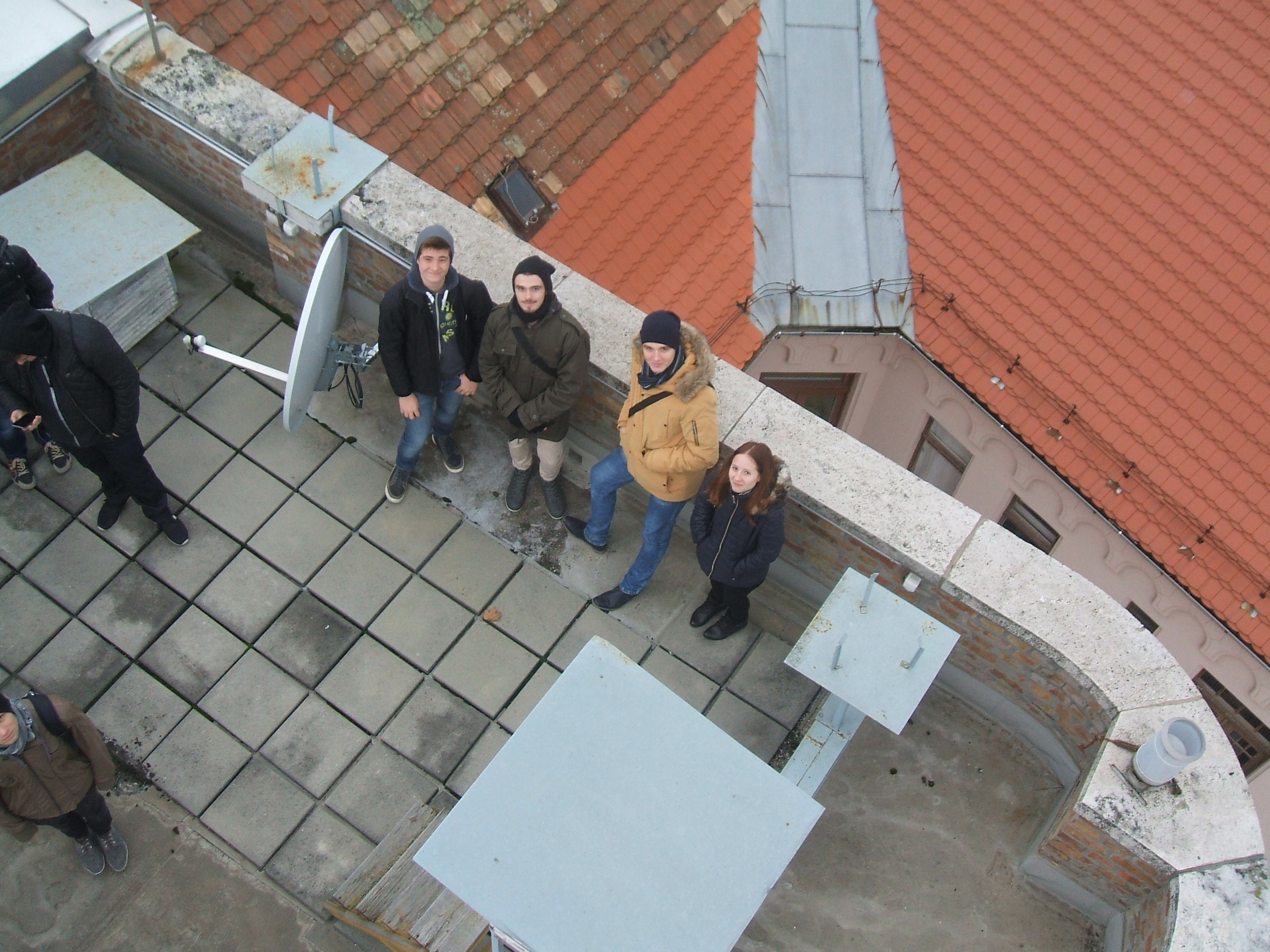1-2. Az adjunktusnő és a gimnazisták az Éghajlattan Tanszék tetőtéri teraszán.